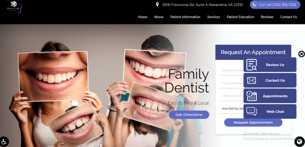 We also perform emergency dentist services that include bonding, root canals and bridges. As a local dentist, we create lifelong relationships with our patients and their families and work to ensure that they receive treatments in a comfortable and relaxed environment. Dr. Kamal and our team invite you to schedule an appointment by calling 703-763-1329 and experience why our patients think 3D Dental Care is the best dentist in Alexandria.