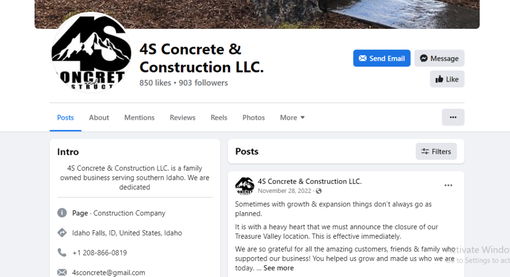 Home » Listings » 4 S Concrete April 8, 2023 4 S Concrete Construction 4S Concrete & Construction LLC. is a family owned business serving southern Idaho. Add to favourites Report abuse Contact details Please complete the captcha field below to view phone number and/or email address. http://4sconcreteidaho.com WHOIS Created on: 04/07/2021, 22:29PM Last Updated on: 04/07/2026, 23:15PM Expires on: 04/07/2026, 22:29PM Registrant: State: ID Country: UNITED STATES Country Code: US Domain Name: 4sconcreteidaho.com Name Servers: Host Names: ns-cloud-a1.googledomains.com, ns-cloud-a2.googledomains.com, ns-cloud-a3.googledomains.com, ns-cloud-a4.googledomains.com Audit: Created on: 04/12/2026, 10:59AM Last Updated on: 04/12/2026, 10:59AM Registrar: Squarespace Domains II LLC Registrar IANAID: 895 WHOIS Server: whois.squarespace.domains Contact Email: abuse-complaints@squarespace.com