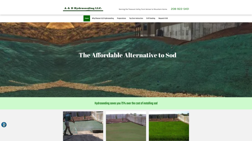 208-922-545 - FREE estimates. Over 30 years of experience. Improved techniques. Hydroseeding. Drill seeding. Sod-like lawns.