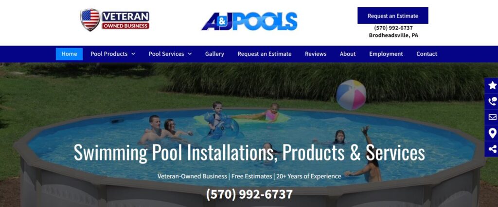 From above ground pool installations to repairing damaged pools, A & J Pools LLC is the only name you need to know when it comes to swimming pools in the Brodheadsville, PA area. A veteran-owned local business, we offer pool products made by all the top name brands.