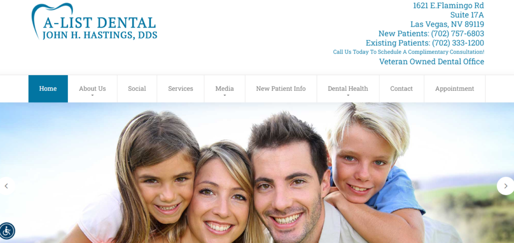 Welcome to A-List Dental, the office of Dr. John Hastings, your dentist in Las Vegas. Offering the highest quality dental services available today, our mission is to maintain optimal levels of oral health and create the most attractive smiles for every member of your family. Providing an extensive selection of dental services, our reputation of excellence is based upon delivering compassionate care and achieving outstanding treatment outcomes. Our commitment is to make certain that every one of our patients receives the highest levels of personalized care with a treatment plan that is tailored to meet their specific dental needs.
