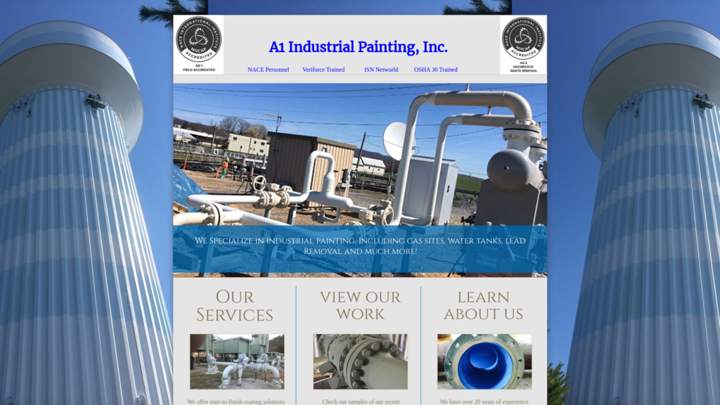 A1 has over 20 years of experience in the industrial painting industry. We offer start-to-finish coating solutions for every project. We specialize in coating of oil and gas sites, including water tanks, waste water treatment plants, large industrial facilities and more!