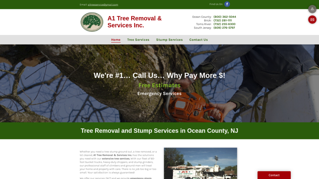 A1 Tree Removal & Services in Brick, NJ offers tree trimming, tree removal, and stump grinding services in Ocean County, NJ. Call us at (732) 255-6300.