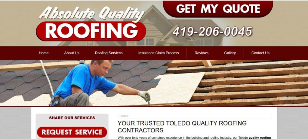 Toledo Roofing ContractorAt Absolute Quality Roofing, our roofing contractors have the knowledge, skill, method, and expertise to help you with all of your residential or commercial roofing needs. Absolute Quality Roofing was established in 2012 by builders and roofers with over 40 years of combined experience in the industry. This professional team has unsurpassed skill and experience.