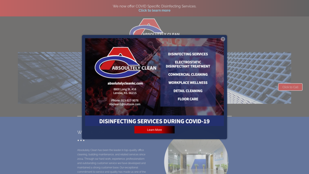 Absolutely Clean has been the leader in top-quality office cleaning, building maintenance, and related services since 2002. Our hard work, experience, professionalism and outstanding customer service has made us one of the premier providers in the greater Kansas City area.
