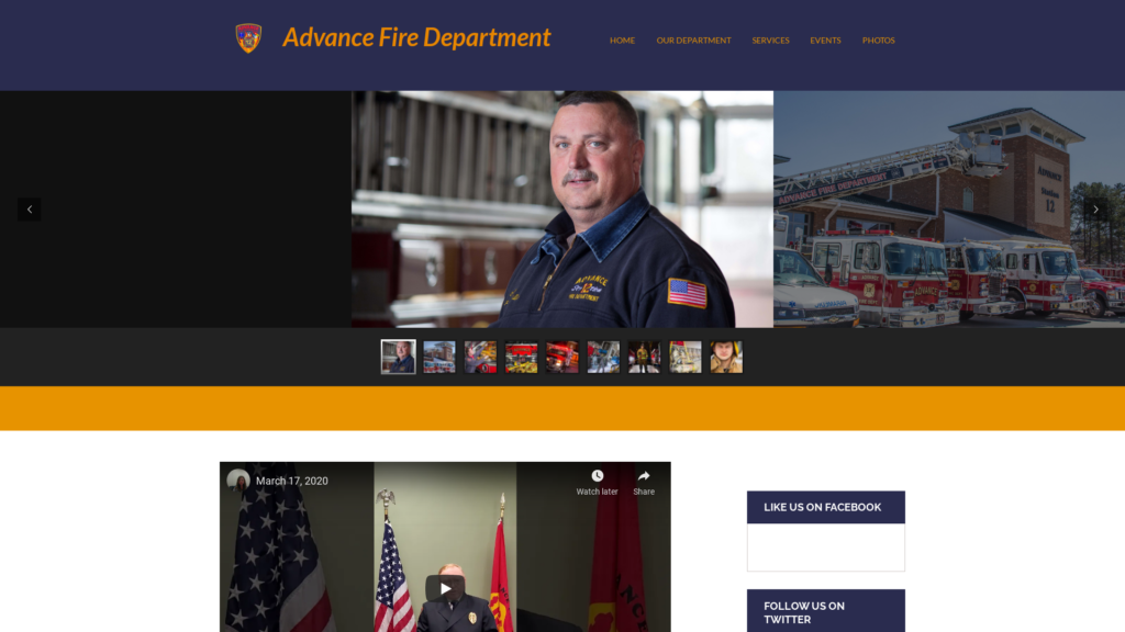 M.L. Mullis served as the first fire chief and G.A. Potts as assistant chief, and Hubert Bailey as President of the organization. In 1952 this was the only fire department in the county with the exception of the municipal fire department of Mocksville. Since then the Advance Fire Department has purchased much newer equipment.