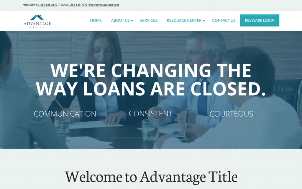 The Mission: Advantage Title, LLC is a driving force in the title and settlement services industry. We are national in scope but locally staffed, with a wealth of experience in settlement services. We operate and provide closing services in 48 states. It is our mission to provide the most courteous, consistent communication resulting in concise and competitive service for our clients and borrowers.