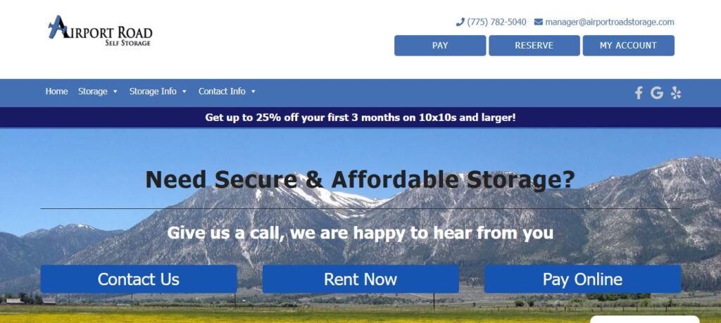 Since 2007, our family-owned self storage near Minden, NV has provided clean, quality and affordable self storage solutions for the residents and businesses of Carson Valley, South Lake Tahoe and all other surrounding areas. As the number one self storage for dependable state-of-the-art security to keep your belongings safe and protected, Airport Road Self Storage is dedicated to providing unmatched levels of quality and excellence in self storage service and amenities. Come stop by and enjoy a fresh cup of coffee while we answer all your mini storage questions.