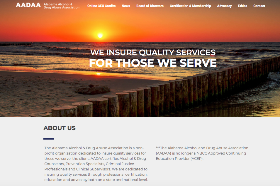 ***The Alabama Alcohol and Drug Abuse Association (AADAA) is no longer a NBCC Approved Continuing Education Provider (ACEP).