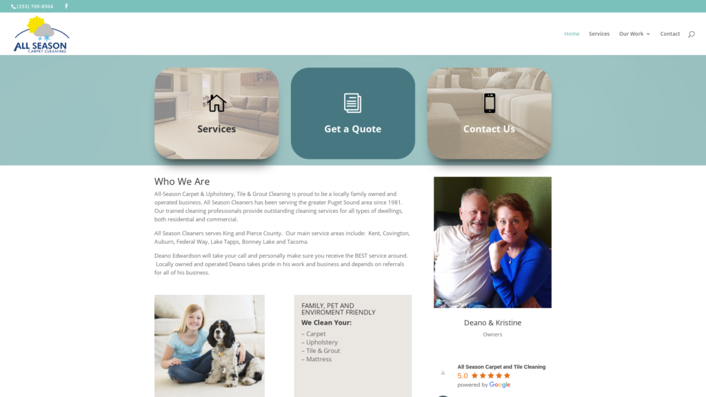 All-Season Carpet & Upholstery, Tile & Grout Cleaning is proud to be a locally family-owned and operated business. All Season Cleaners has been serving the greater Puget Sound area since 1981. Our trained cleaning professionals provide outstanding cleaning services for all types of dwellings, both residential and commercial.