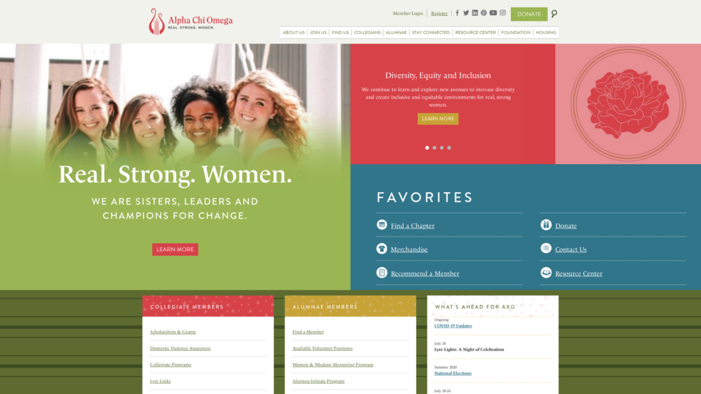 Alpha chi omega is an organization about you: unique, talented, genuine women choosing a fun and meaningful way to enhance your college experience and building lifelong bonds that extend long into your alumnae years.