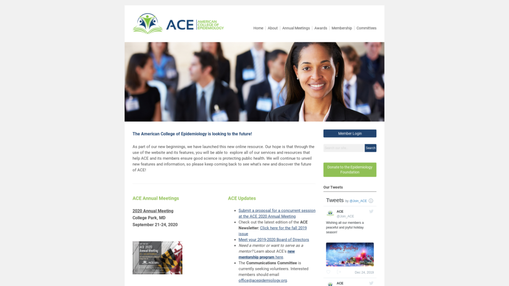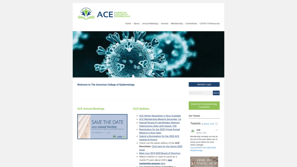 The American College of Epidemiology was incorporated in 1979 to develop criteria for professional recognition of epidemiologists and to address their professional concerns. The College has benefited from the leadership of the leading epidemiologists in the world.