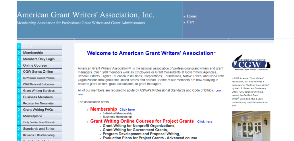 American Grant Writers’ Associationâ„ is the national association of professional grant writers and grant managers. Our 1,200 members work as Employees or Grant Consultants at Government Agencies, School Districts, Higher Education Institutions, Corporations, Foundations, Native Tribes, and Non-Profit Organizations throughout the United States and abroad. Some of our members are now studying to become grant writers, grant consultants, or grant managers.
