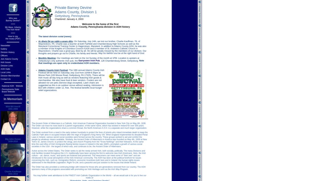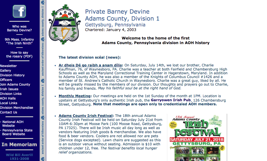 A.O.H. - Adams County, Division #1, Gettysburg, PA