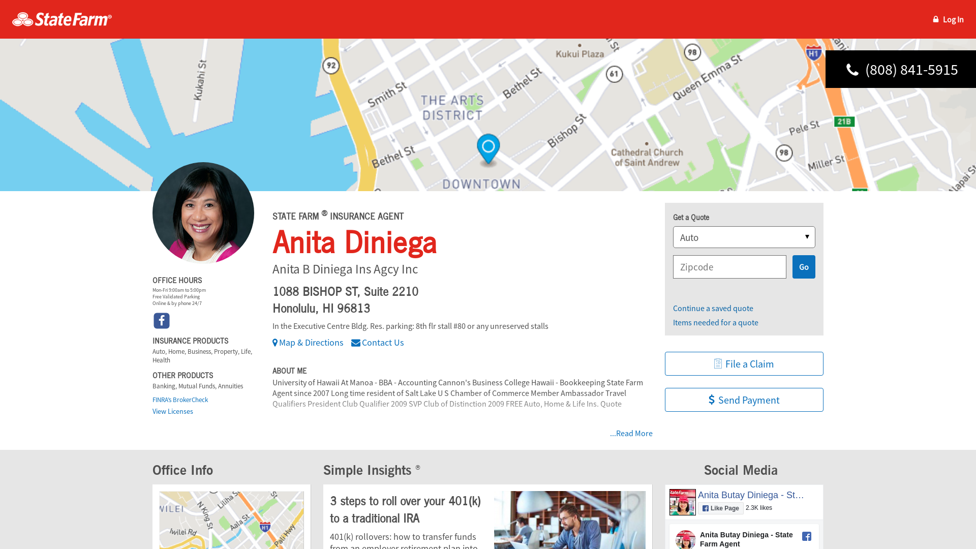 Call (808) 841-5915 for life, home, car insurance and more. Get a free quote from State Farm Agent Anita Diniega in Honolulu, HI