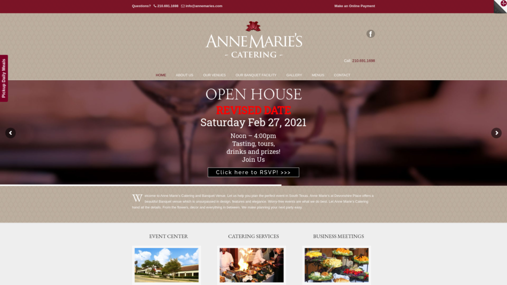 Whether you need simple, bite-sized appetizers for an afternoon meeting, or a full meal for an elegant wedding, our experienced team has affordable, creative solutions that will make the most of your budget. Our payment plan options for qualified customers give you the freedom to spread the costs out over a longer period of time. For your special event in San Antonio, TX, you need a worry-free and memorable experience from your San Antonio, TX, caterer. To get started with your planning, contact Anne Marie’s Catering today.
