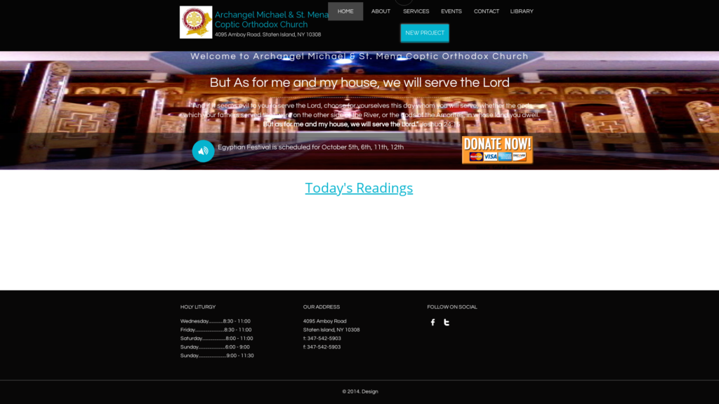 Archangel Michael & St. Mena Coptic Orthodox Church was established in Staten Island, NY in 1982 AD by Late Hegomen Fr. Wissa Bessada.