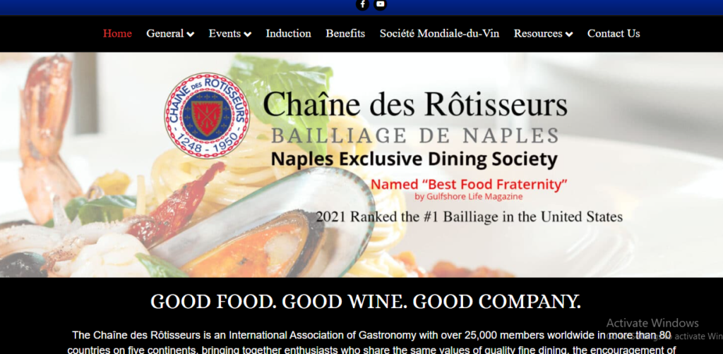 The Chaîne des Rôtisseurs is an International Association of Gastronomy with over 25,000 members worldwide in more than 80 countries on five continents, bringing together enthusiasts who share the same values of quality fine dining, the encouragement of the culinary arts, and the pleasures of the table. This is the website of the local chapter in Naples, Florida.