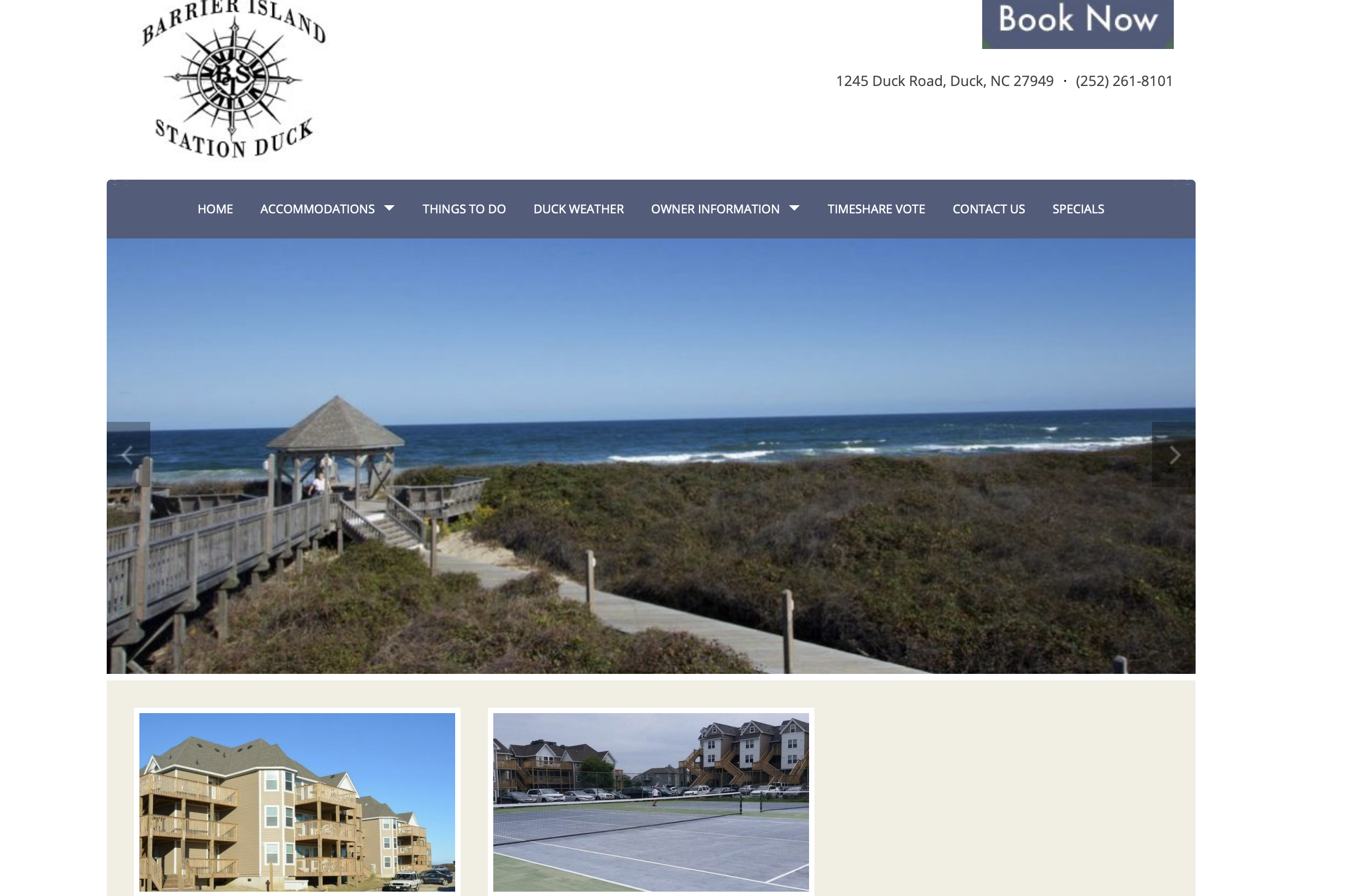 Barrier Island Station is an oceanfront resort in Duck, a charming small town in the northern section of the Outer Banks. The resort offers a choice of one-, two- and three-bedroom suites with a variety of amenities and will accommodate from one to ten guests depending on size. The resort itself offers many things to do including swimming, tennis, working out, special activities, direct beach access and more to keep you busy.