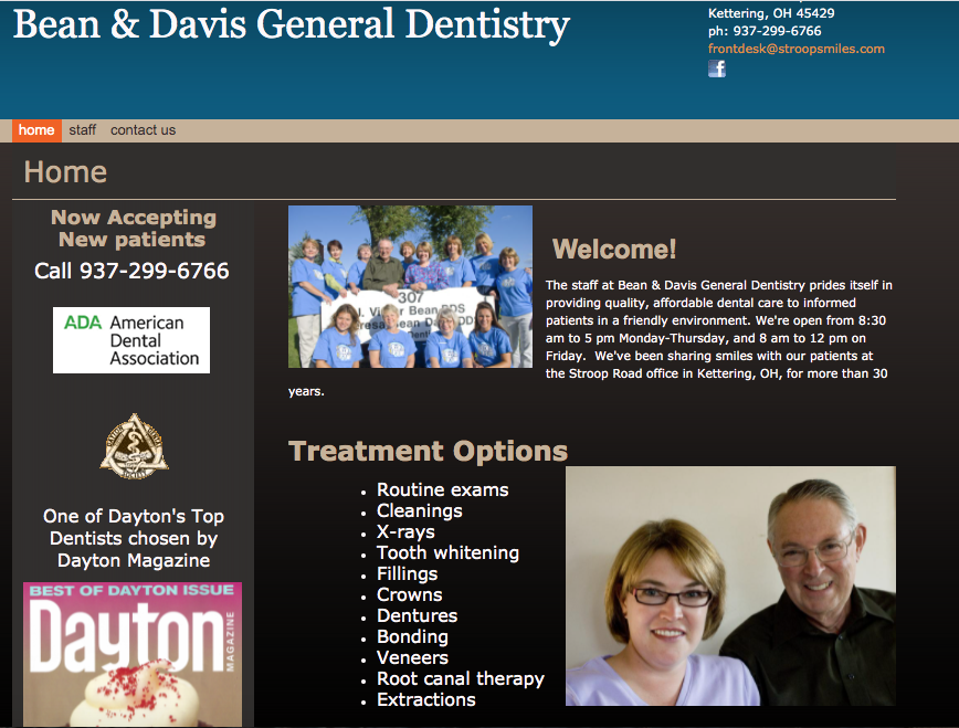 The staff at Bean & Davis General Dentistry prides itself in providing quality, affordable dental care to informed patients in a friendly environment. We’re open from 8:30 am to 5 pm Monday-Thursday, and 8 am to 12 pm on Friday. We’ve been sharing smiles with our patients at the Stroop Road office in Kettering, OH, for more than 30 years.