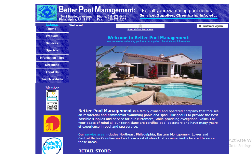 Better Pool Management is a family owned and operated company that focuses on residential and commercial swimming pools and spas. Our goal is to provide the best possible supplies and service for our customers, while providing exceptional value. For your peace of mind all our technicians are certified pool operators and have many years of experience in pool and spa service.