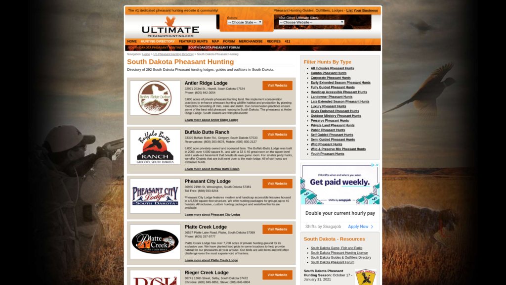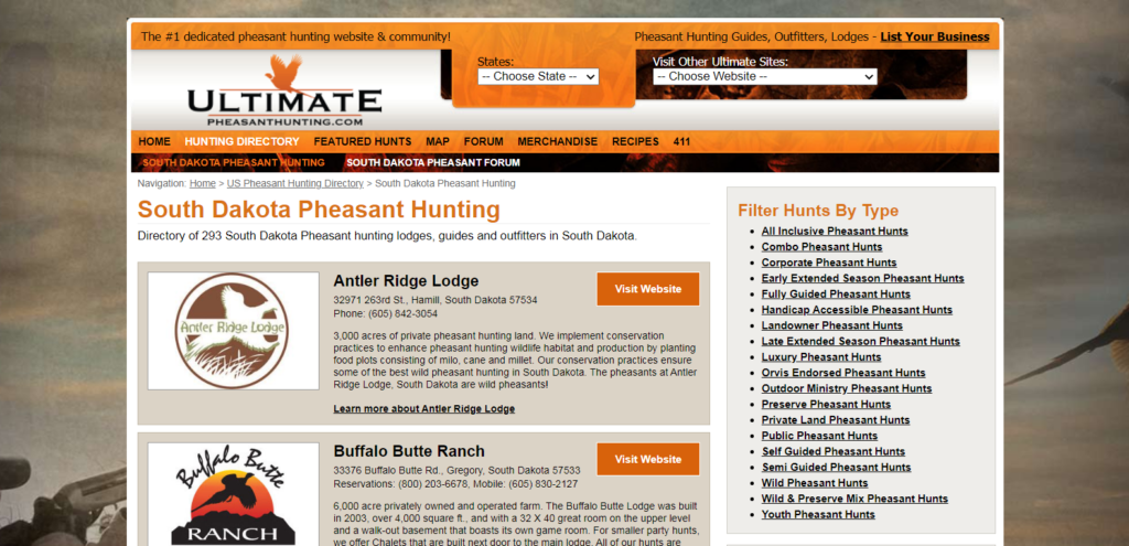 Ultimate Pheasant Hunting is the largest directory for South Dakota Pheasant Hunting guides, outfitters, lodges and private land.