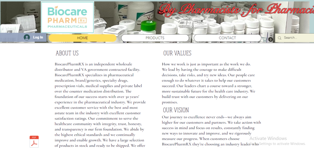 BiocarePharmRX is an independent wholesale distributor and VA government contracted facility. BiocarePharmRX specializes in pharmaceutical medication, brand/generics, specialty drugs, prescription vials, medical supplies and private label over the counter medication distribution. The foundation of our success starts with over 30 years’ experience in the pharmaceutical industry. We provide excellent customer service with the best and most astute team in the industry with excellent customer satisfaction ratings. Our commitment to serve the healthcare community with integrity, trust, honesty, and transparency is our firm foundation. We abide by the highest ethical standards and we continually improve and enable growth. We have a large selection of products in stock and ready to be shipped. We offer the lowest prices & we meet and surpass our customers’ demands.