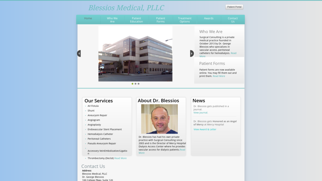Surgical Consulting is a private medical practice founded in October 2013 by Dr. George Blessios who specializes in vascular access, peritoneal catheters for hemodialysis.