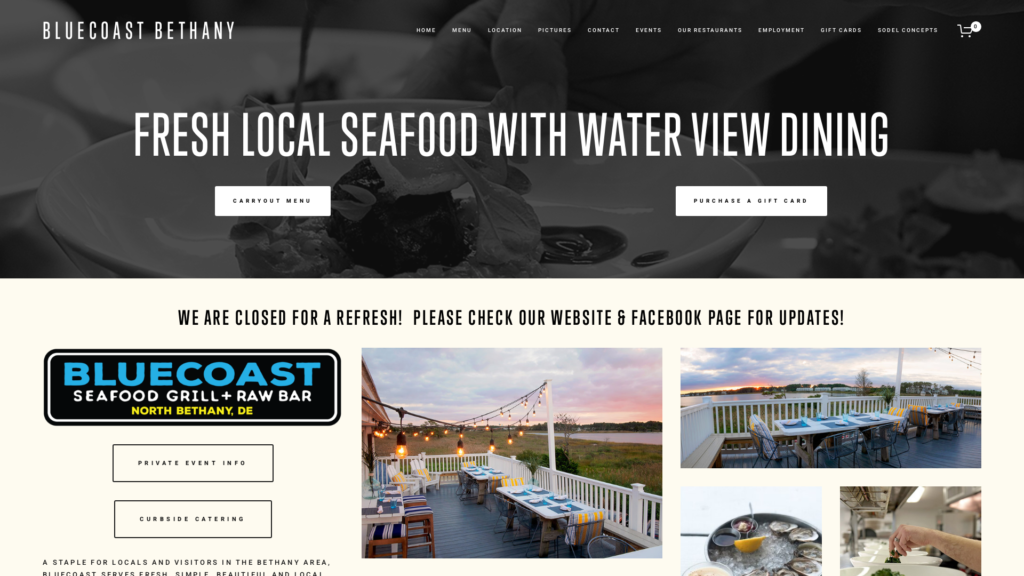 Bluecoast seafood grill in bethany beach is considered the best seafood restaurant in Delaware. Overlooking the beautiful salt pond, with great water views from the dining room and the back deck, bluecoast serves fresh fish, including tuna, rockfish in season, salmon, halibut, mahi mahi, and seafood favorites like shrimp, crab, scallops and clams, but always has a steak on the menu. Bluecoast has an extensive award winning wine list, and a list of craft cocktails to please everyone. For the best restaurant in bethany beach, come check out bluecoast bethany seafood grill and raw bar.
