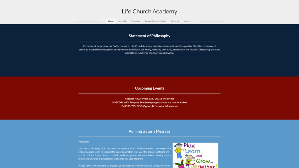 Welcome to Life Church Academy (formerly Boutte Christian), home of the Eagles! We sincerely appreciate and welcome your interest in our school. We hope that you will enjoy learning about the school programs, its personnel, and student activities.