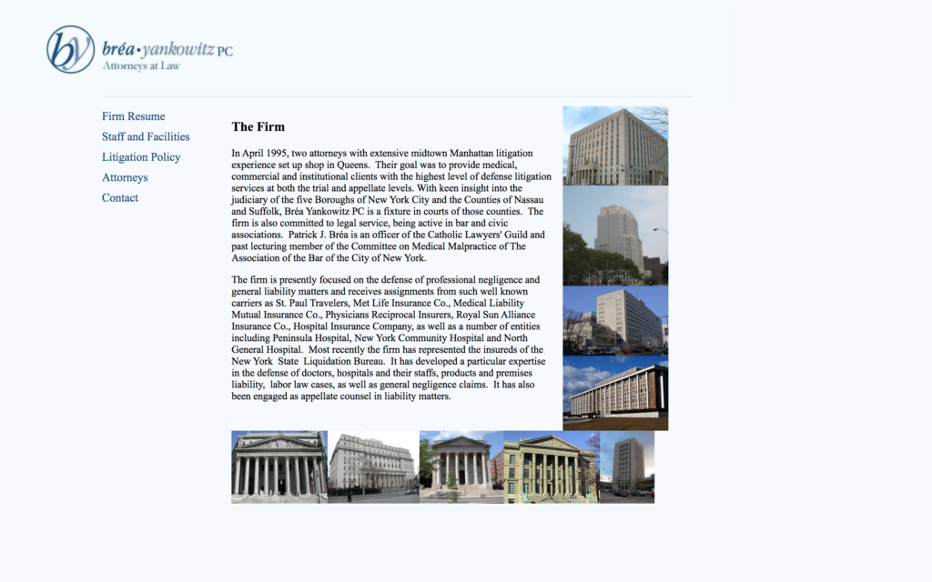 The firm is presently focused on the defense of professional negligence and general liability matters and receives assignments from such well known carriers as St. Paul Travelers, Met Life Insurance Co., Medical Liability Mutual Insurance Co., Physicians Reciprocal Insurers, Royal Sun Alliance Insurance Co., Hospital Insurance Company, as well as a number of entities including Peninsula Hospital, New York Community Hospital and North General Hospital.  Most recently the firm has represented the insureds of the New York  State  Liquidation Bureau.  It has developed a particular expertise in the defense of doctors, hospitals and their staffs, products and premises liability,  labor law cases, as well as general negligence claims.  It has also been engaged as appellate counsel in liability matters.