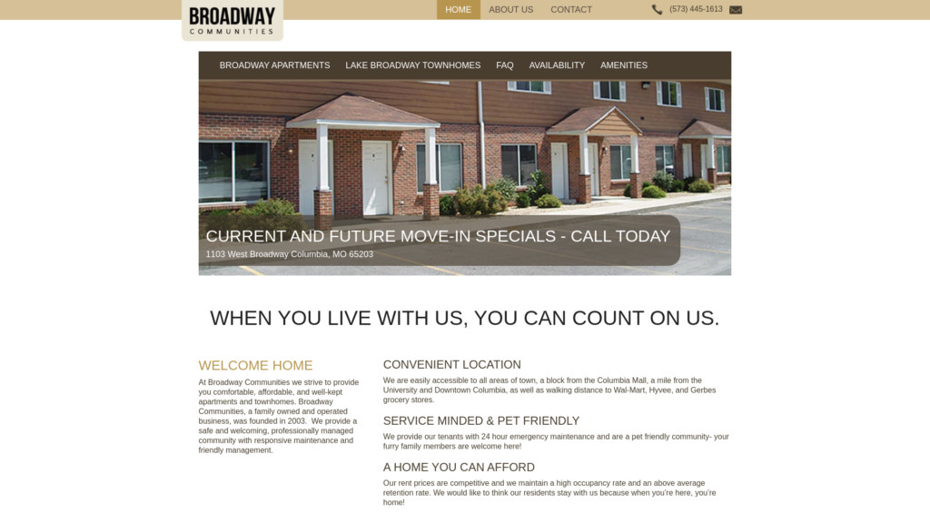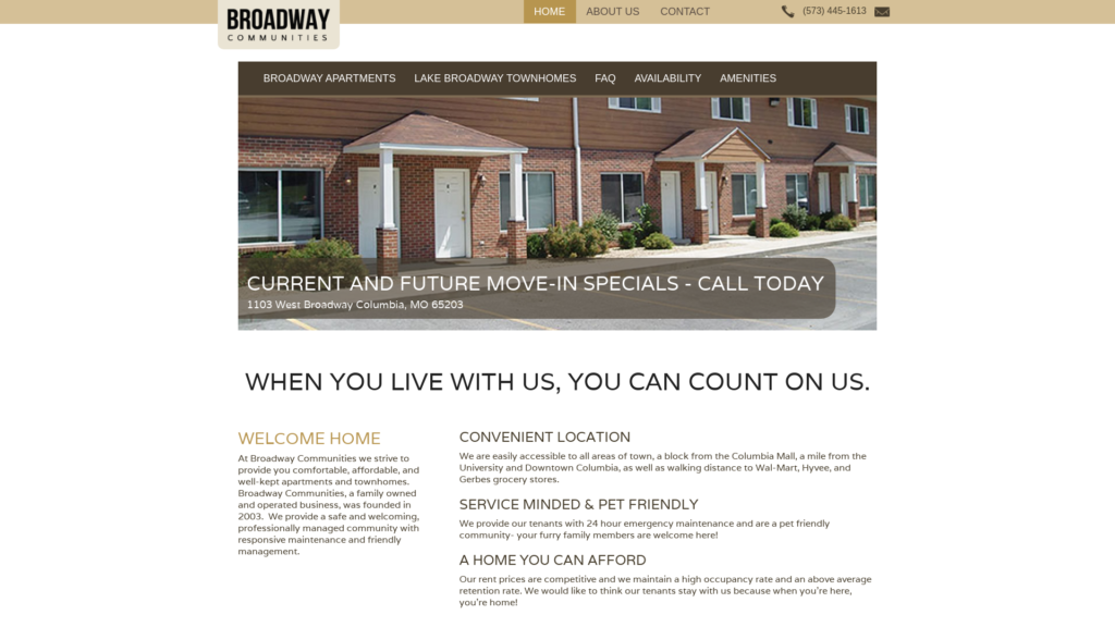 Broadway Communities is a locally, family operated business founded in 2003 to provide a safe, affordable, and comfortable home for the many wonderful residents of Columbia.