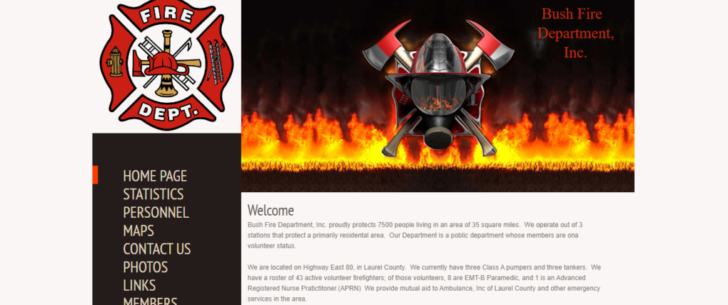 Bush Fire Department, Inc. proudly protects 7500 people living in an area of 35 square miles. We operate out of 3 stations that protect a primarily residental area. Our Department is a poblic department whose members are ona volunteer status.