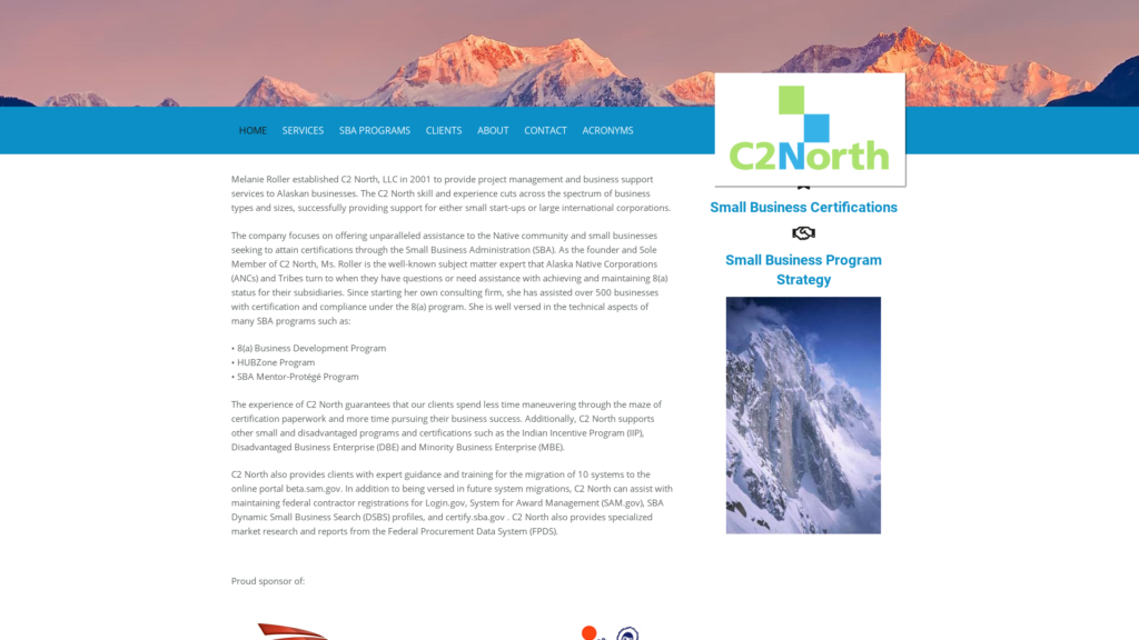 Melanie Roller established C2 North, LLC in 2001 to provide project management and business support services to Alaskan businesses. The C2 North skill and experience cuts across the spectrum of business types and sizes, successfully providing support for either small start-ups or large international corporations.