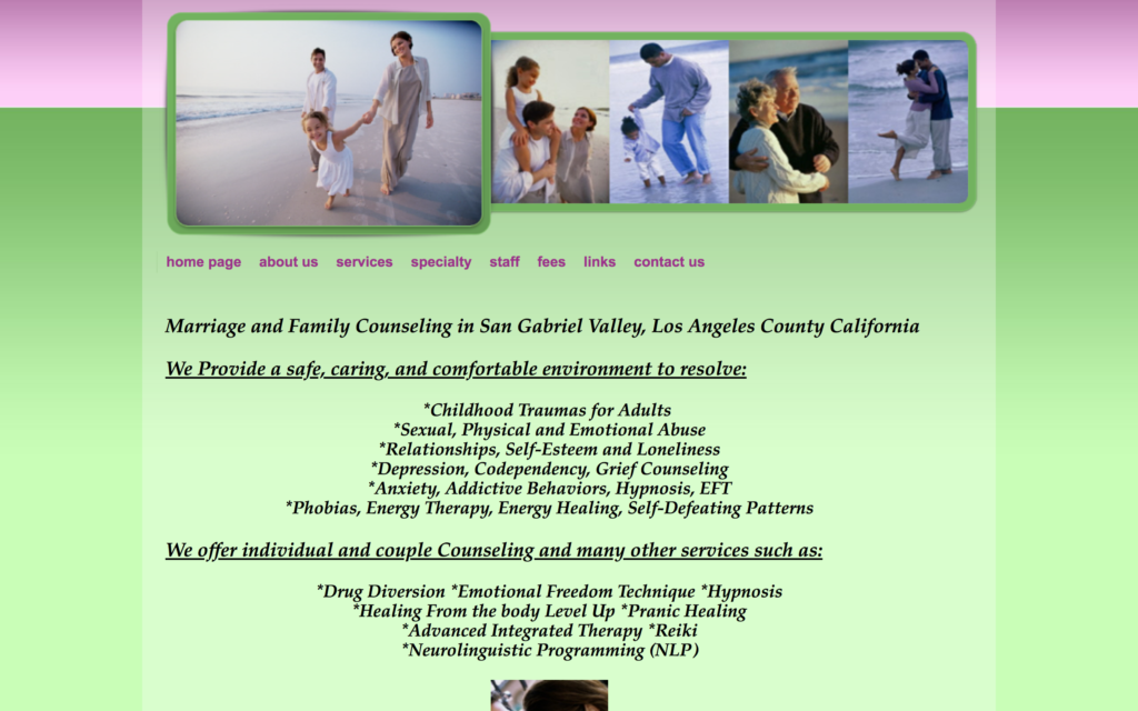 We provide a safe, caring, and comfortable environment to resolve childhood traumas for adults, sexual, physical and emotional abuse, relationships, self-esteem and loneliness, depression, codependency, grief counseling, anxiety, addictive behaviors, hypnosis, eft, phobias, energy therapy, energy healing, and self-defeating patterns.