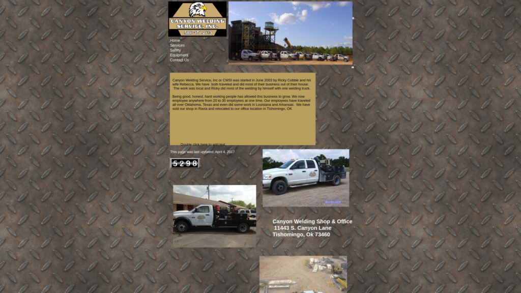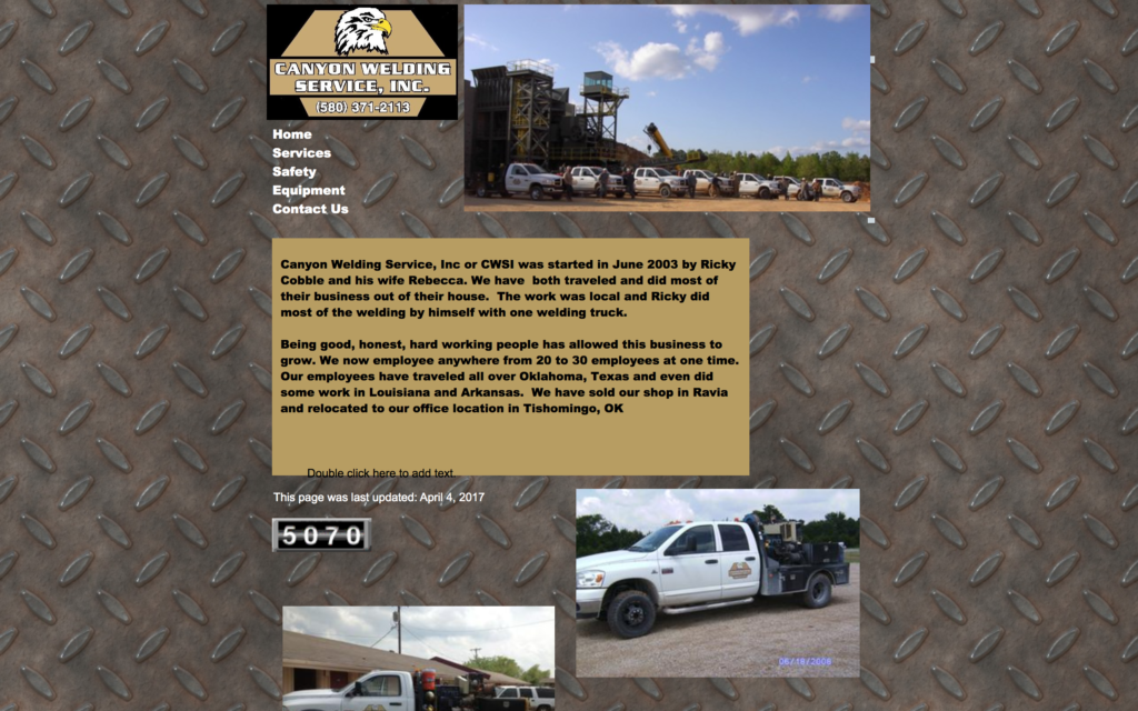 Canyon Welding Service, Inc. or CWSI was started in June 2003 by Ricky Cobble and his wife Rebecca. We have both traveled and did most of the business out of the house. The work was local and Ricky did most of the welding by himself with one welding truck. Being good, honest, hard-working people has allowed this business to grow. We now work anywhere from 20 to 30 tasks at one time. Our employees have traveled all over Oklahoma, Texas, and even did some work in Louisiana and Arkansas. We have sold our shop in Ravia and relocated to our office location in Tishomingo, OK