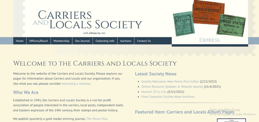 Established in 1991, the Carriers and Locals Society is a not-for-profit association of people interested in the carriers, local posts, independent mails and Eastern expresses of the 19th century, their stamps and postal history.