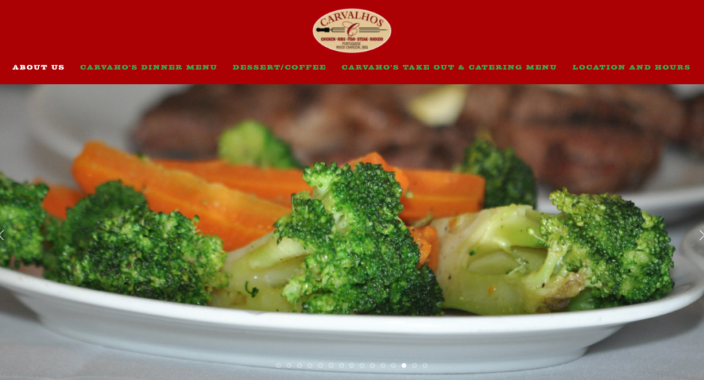 At Carvalhos Restaurant, we serve delicious, authentic Portuguese style BBQ and specialties! We cook over all-natural Portuguese wood charcoal for a unique, unforgettable taste. Our meats, seafood, and poultry are all seasoned with a savory mix of herbs and spices from our secret, homemade recipe that has been perfected over many years. Whether you are dining at our charming restaurant, ordering take-out for a quiet evening at home, or catering your next special event, Carvalho’s Restaurant is sure to please.