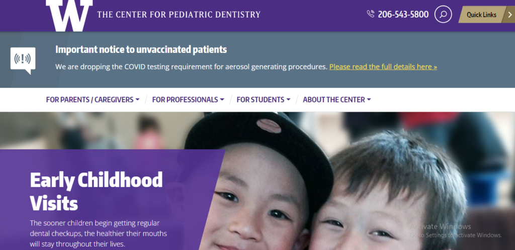 The University of Washington Center for Pediatric Dentistry is dedicated to providing the best quality dental services for children and the highest level dental education for our students.