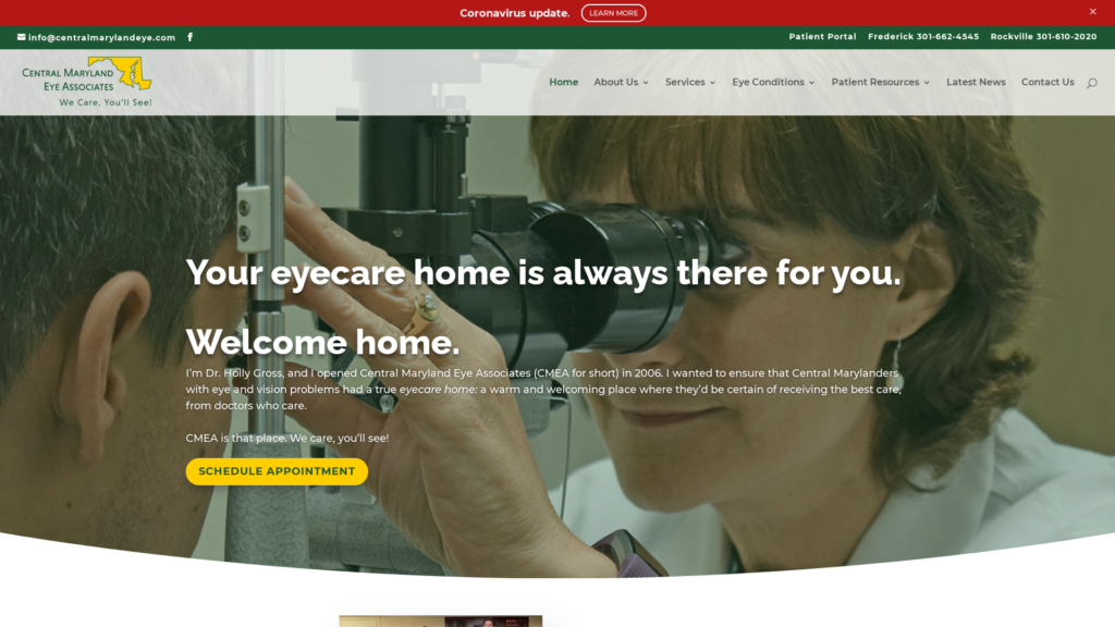 Our comprehensive ophthalmology practice cares for and treats patients 8 years of age and older. Our warm and friendly staff will help make your visit go smoothly, from scheduling your appointment, to greeting you at the front desk, and throughout your visit with us.
