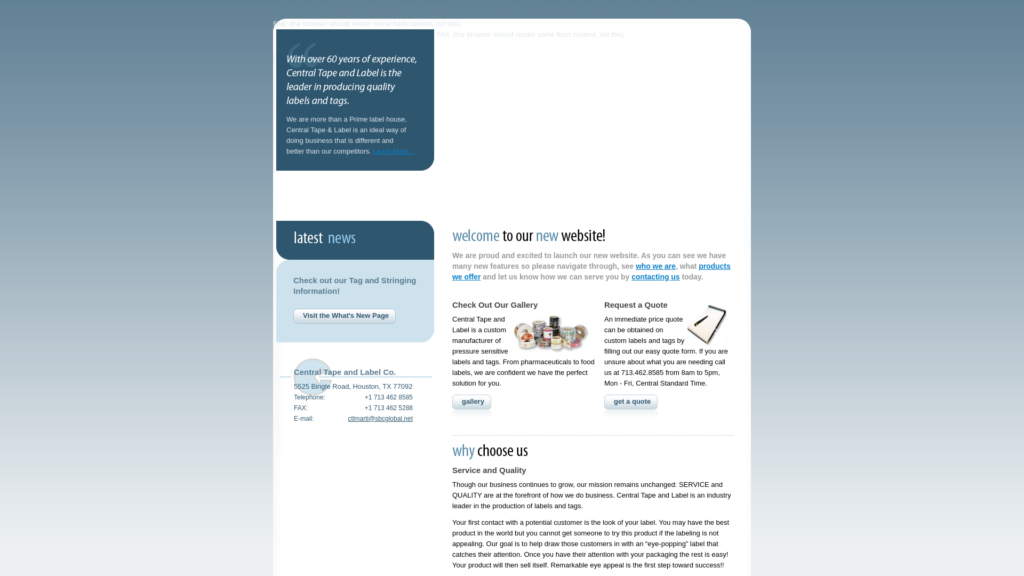 Central Tape and Label, Pressure Sensitive Adhesive Tape and Labels, Manufacturing, Packaging Products, Dispensers, Sample Labels, custom labels, Thermal Transfer Labels, Prepress, food labels, vitamin labels, vinyl labels, bar code labels, barcode labels, UPC labels, UL labels, water activated tape, gum tape, reinforced tape, chemical labels, safety labels, custom printed label, packaging supplies, better packages, case sealer, carton sealing tape - Houston, Texas, TX