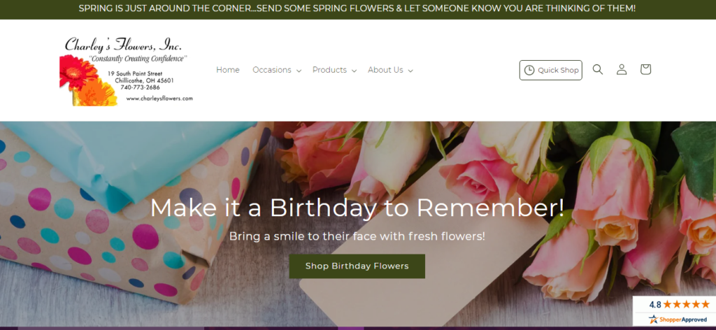 The Rusk Family has owned & operated in downtown Chillicothe, OH since 1966. Our 100% Satisfaction Guarantee is our personal commitment to creating long term relationships with our customers. Charley Flowers Llc is a second and third generation go-to florist in Chillicothe, OH, serving the area with fresh flower arrangements and additional gifts of all kinds! Since we opened, we’ve been the premier florist offering the freshest flowers and most beautiful arrangements for every occasion to the great residents of Chillicothe and beyond! Charley Flowers Llc is a locally-owned flower shop with years of experience as the Rusk Family worked at shops prior to opening their own location. Known for our long lasting arrangements and best value for your money, Charleys Flowers Llc has floral designers that use their creative talent of floral design to share a love of flowers with the residents of Chillicothe through great design, precise attention-to-detail and wonderfully fresh flowers. We are committed to quality & service and your satisfaction is our number one priority, not just because it’s our job, but because we care. We choose only the freshest, highest quality flowers and our shop has a professional and caring staff to serve all your floral needs. Your gift will arrive beautifully presented and personalized with your message. All of our florists at Charley Flowers Llc take great pleasure in making arrangements that are as unique and beautiful as possible. So much love goes into every piece we design, and we make each one with a personal touch and friendly service, which is why the arrangements we make here are always high-quality. We are constantly creating confidence and care about our designs. We want our flower arrangements to impress every customer with flowers that will put a smile on anyone’s face. Charley Flowers Llc is the best florist in Chillicothe, and we invite you to find out why by ordering with us online, over the phone at 740-773-2686 or in-person at our flower shop near you.
