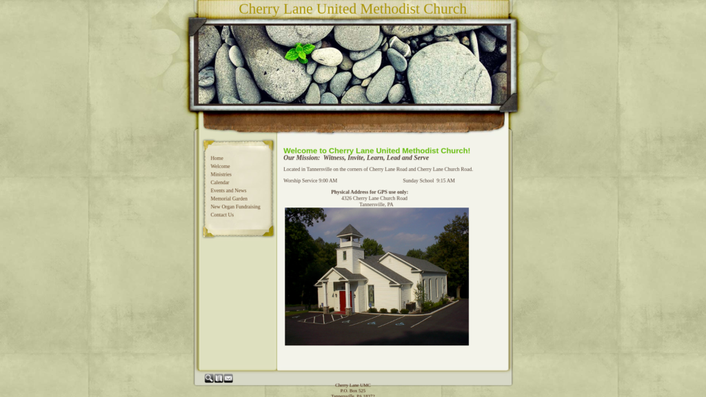 Welcome to the online home of the Cherry Lane United Methodist Church. Established in 1866, the church has served God at the intersection of Cherry Lane Road and Cherry Lane Church Road in Tannersville, Pennsylvania, ever since. Our Sunday Worship is at 9:00 AM and Sunday School is at 9:15 -10:00 AM. Our entire building is wheelchair accessible and there is special parking available for both upstairs and downstairs activities. Our church has a large sanctuary designed to accommodate more worshipers from our growing community. Our building has new Sunday School rooms, and a new kitchen for when we have dinners in our spacious fellowship hall. Please join us for worship this coming Sunday.