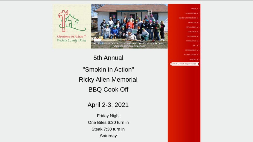 “Neighbors Helping Neighbors. ” Christmas in Action rehabilitates the homes of low income elderly, disabled and veteran homeowners in Wichita County so that they can live in warmth, safety and with independence.