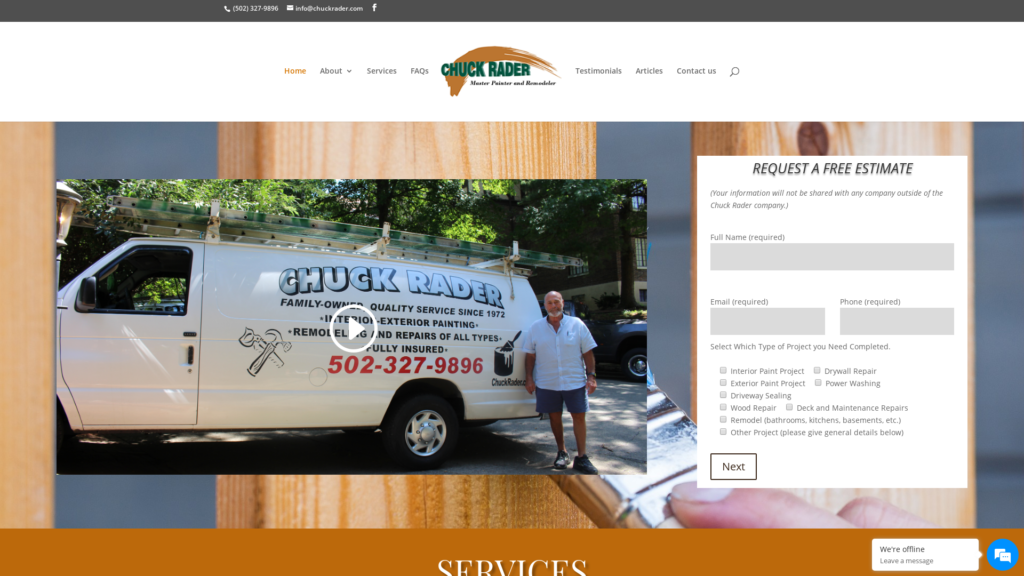 CHUCK RADER brings a wide variety of experience and broad base of knowledge to your painting or remodeling project. Based in Louisville, Kentucky Chuck Rader and his team have over 30 years of experience in painting, remodeling, and commercial coatings. All jobs are guaranteed and estimates are free!