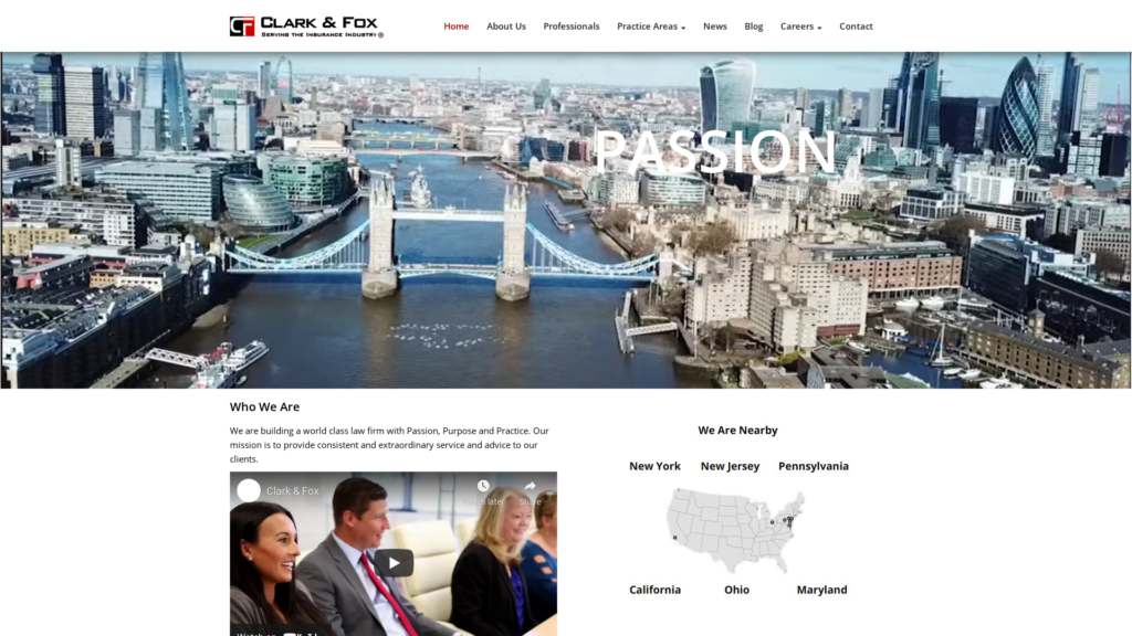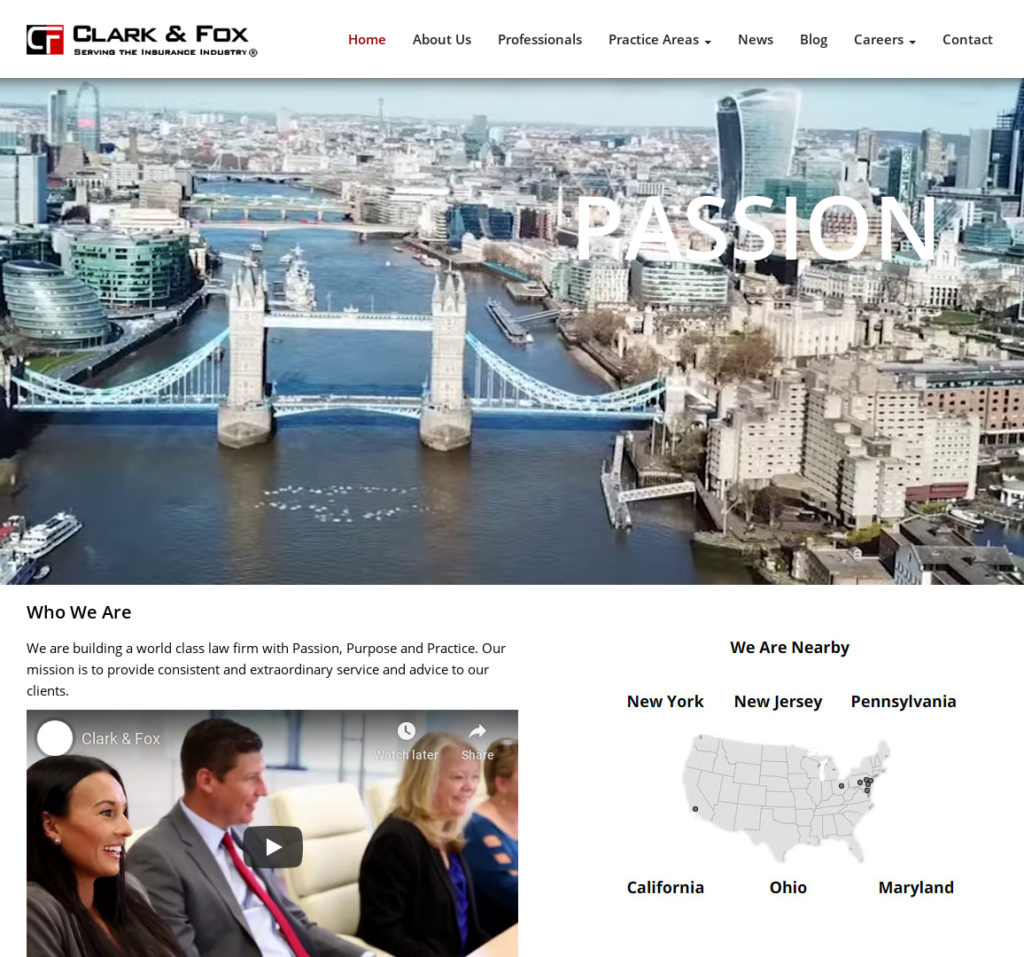 Welcome to Clark & Fox, a company dedicated to representing the international and domestic insurance markets. We are a group of individuals who created a world class law firm and company through passion, purpose, and practice. We pride ourselves on providing consistent and extraordinary legal services to our clients from New Jersey, to Pennsylvania, to California, and many places in between. If you wish to join the Clark & Fox team either as a client or member of our firm please reach out to us.
