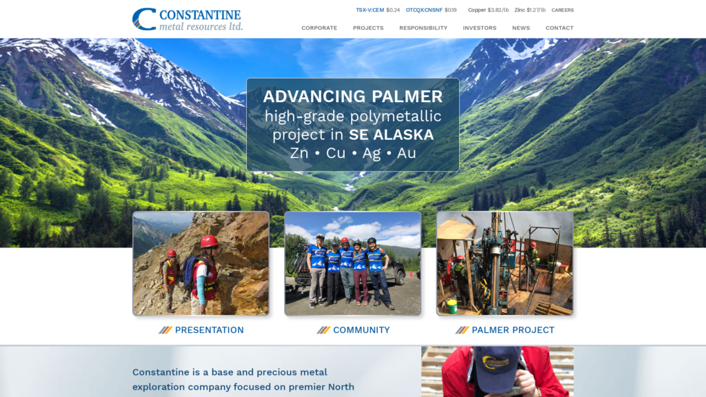 Constantine is a base and precious metal exploration company focused on premier North American mining environments, led by a top tier technical team with a trac