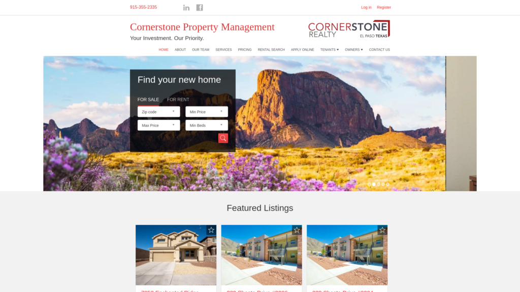 Cornerstone Property Management is a full-service property management company providing exceptional services for single-family homes, condos, townhomes, apartments, and commercial property in the El Paso area.