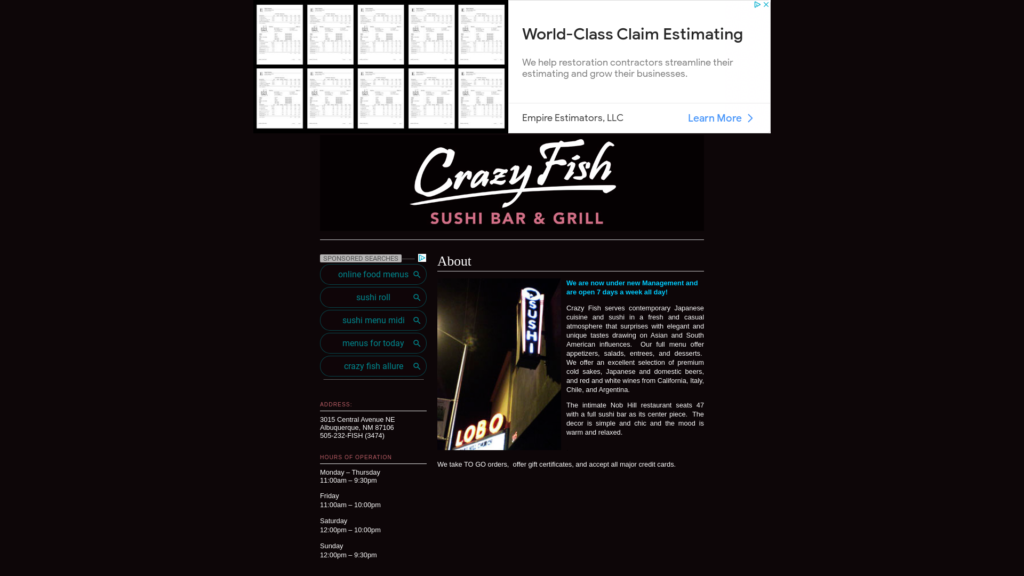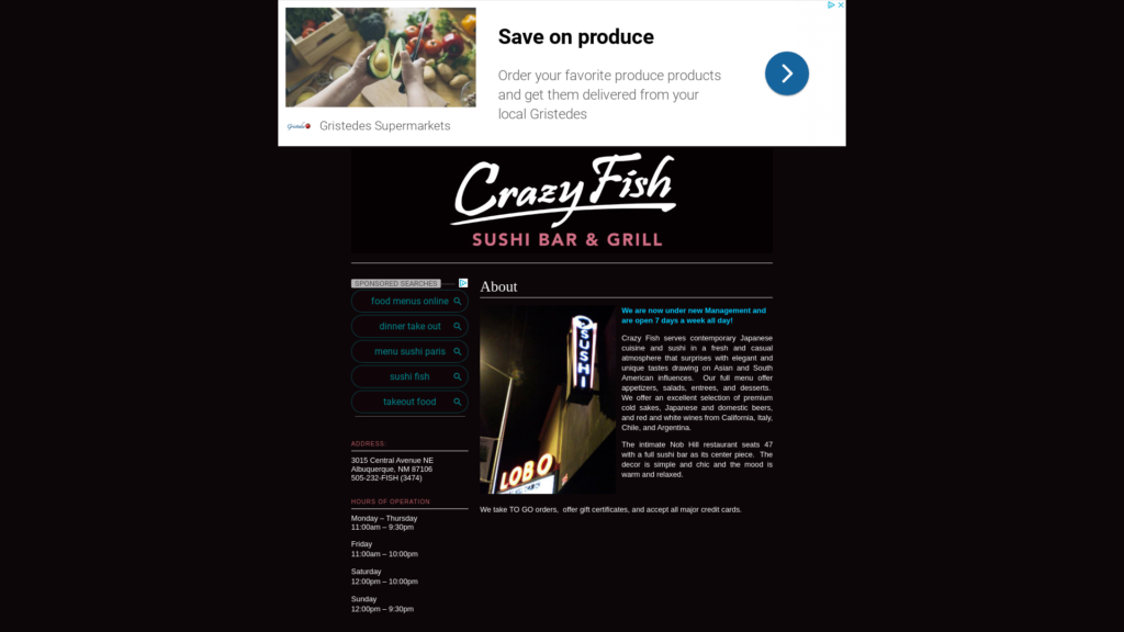Crazy Fish serves contemporary Japanese cuisine and sushi in a fresh and casual atmosphere that surprises with elegant and unique tastes drawing on Asian and South American influences. Our full menu offer appetizers, salads, entrees, and desserts. We offer an excellent selection of premium cold sakes, Japanese and domestic beers, and red and white wines from California, Italy, Chile, and Argentina.