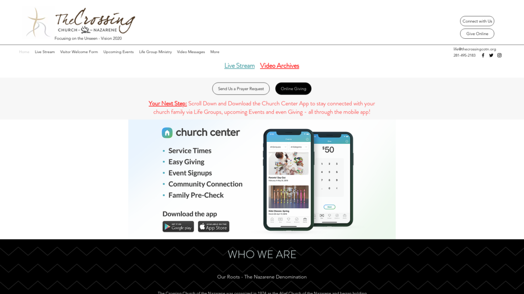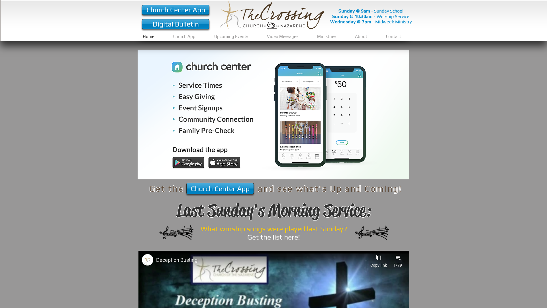 The Crossing Church of the Nazarene purposes to help seekers cross over to life, the saved cross over to completeness, and to cross boundaries of culture to build the kingdom of God.